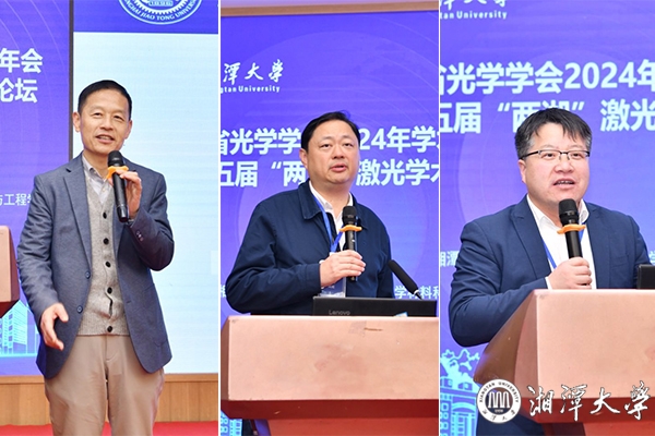 副校長葛飛,湖南省光學(xué)學(xué)會理事長、國防科技大學(xué)教授羅暉,湖北省激光學(xué)會理事長、華中科技大學(xué)教授唐霞輝先后致辭。