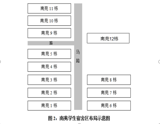 南苑學(xué)生宿舍位于學(xué)校中心部位,靠近圖書館以及第一教學(xué)樓,左右兩邊各有雅園餐廳和南苑師生食堂,前面有籃球場(chǎng)羽毛球場(chǎng)等運(yùn)動(dòng)場(chǎng)地。目前南苑學(xué)生宿舍共計(jì)12棟,建筑面積34095.57平方米,寢室816間,是學(xué)生學(xué)習(xí)以及生活與健身的中心地帶。