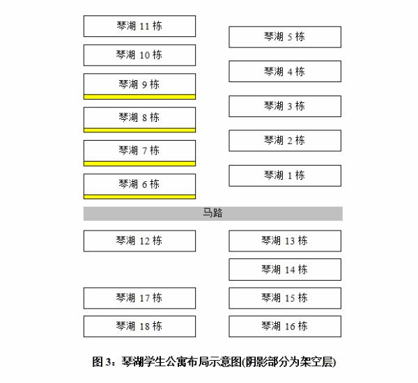 我校學(xué)生宿舍分布在北苑學(xué)生宿舍區(qū)、南苑學(xué)生宿舍區(qū)、琴湖學(xué)生公寓、西湖學(xué)生公寓、金瀚林學(xué)生公寓、興湘學(xué)生宿舍區(qū)等6個(gè)區(qū)域。各區(qū)域布局情況見圖1-圖6。
